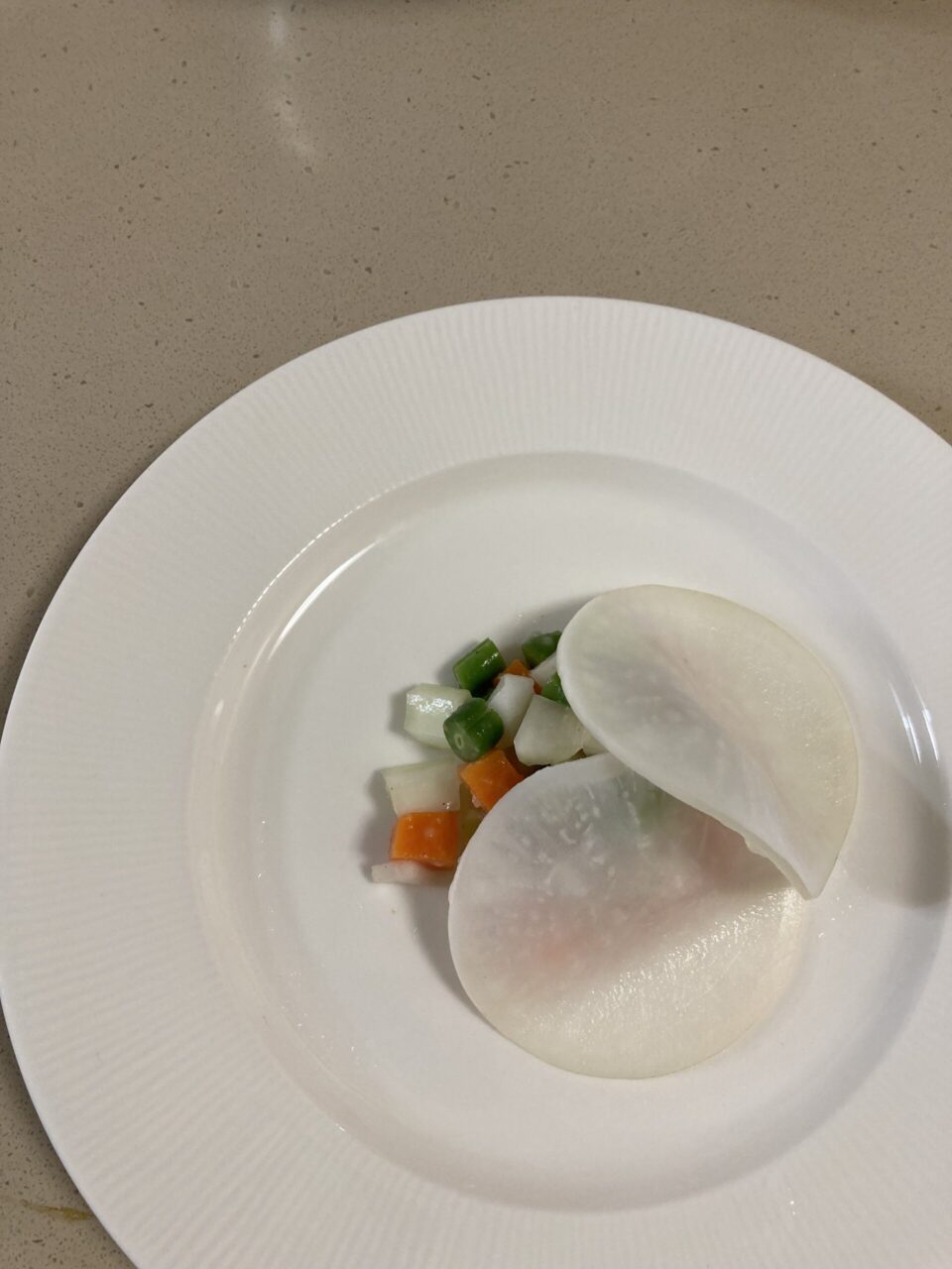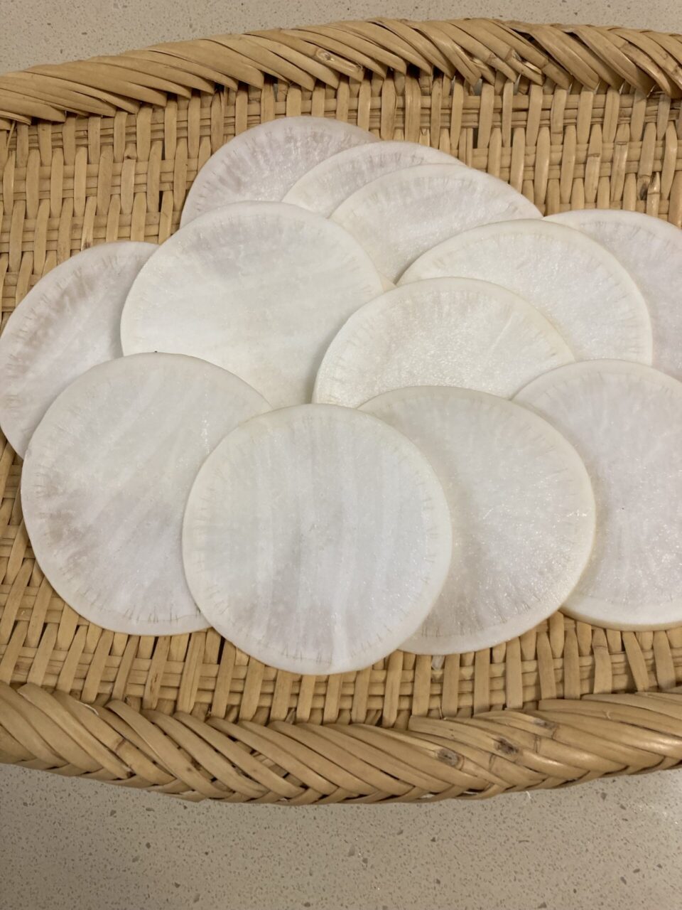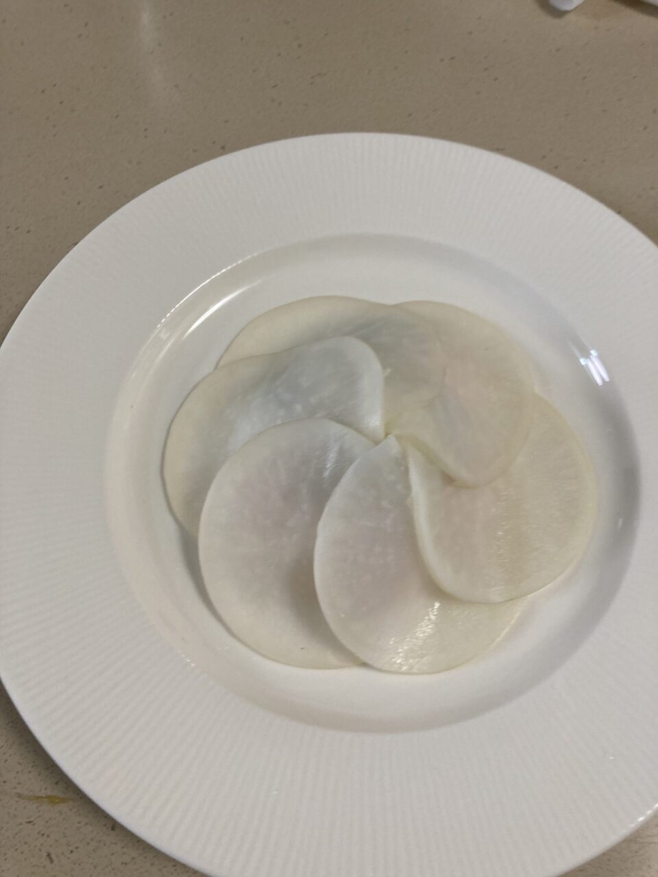 かぶはごく薄切り(スライサーで)にして、さっとゆでる。