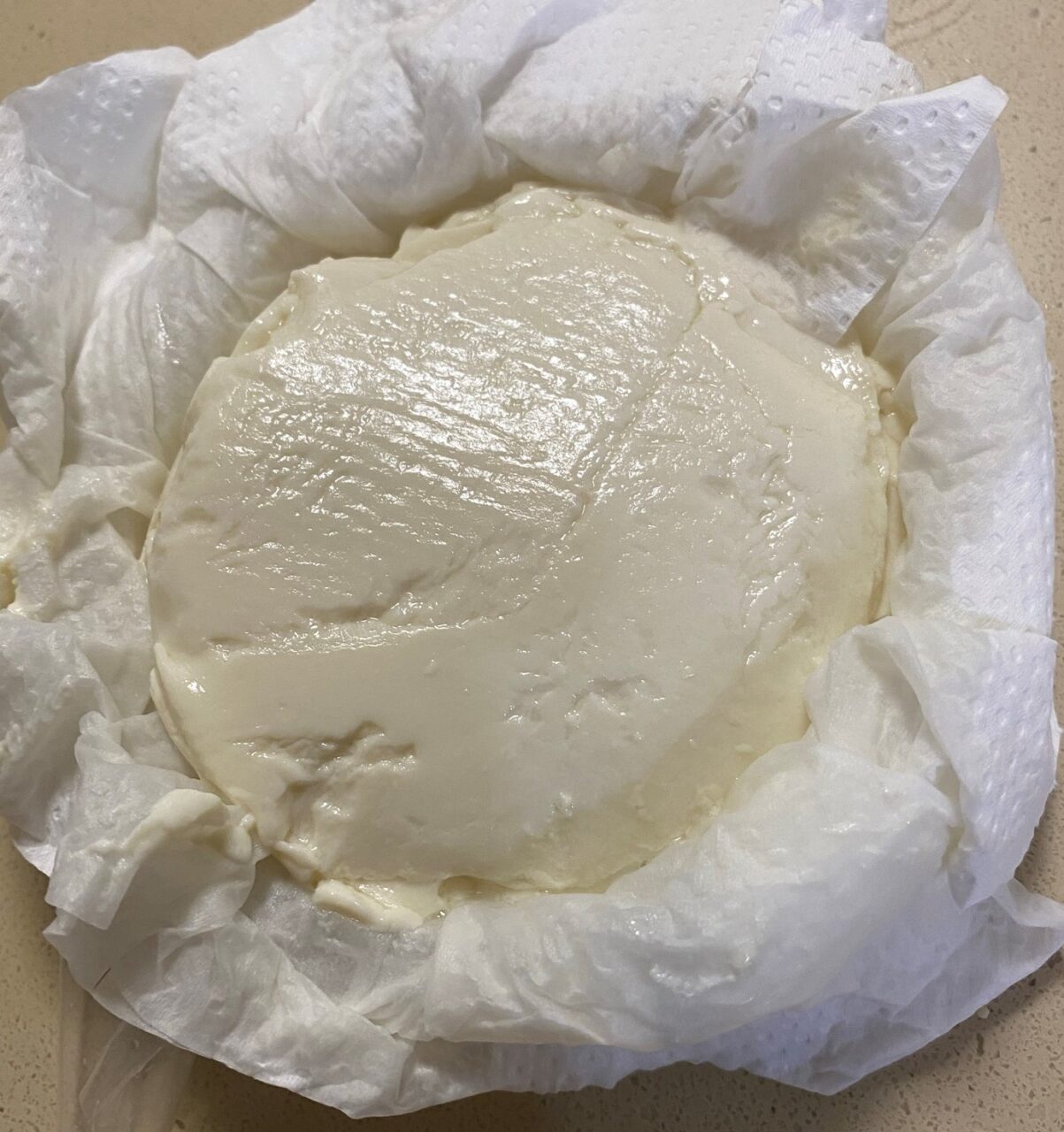 ②の上に③、④をのせる。空気が入った場合は、スプーンか串で潰す。