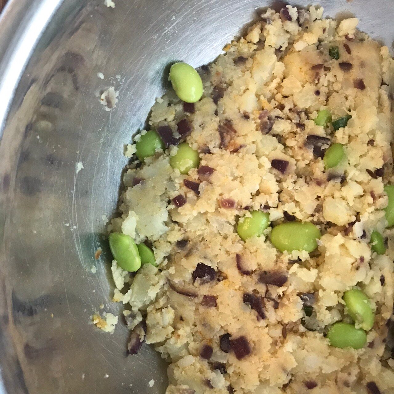 ②に①と枝豆を混ぜる。足りなければ塩、黒こしょうで味を調える。