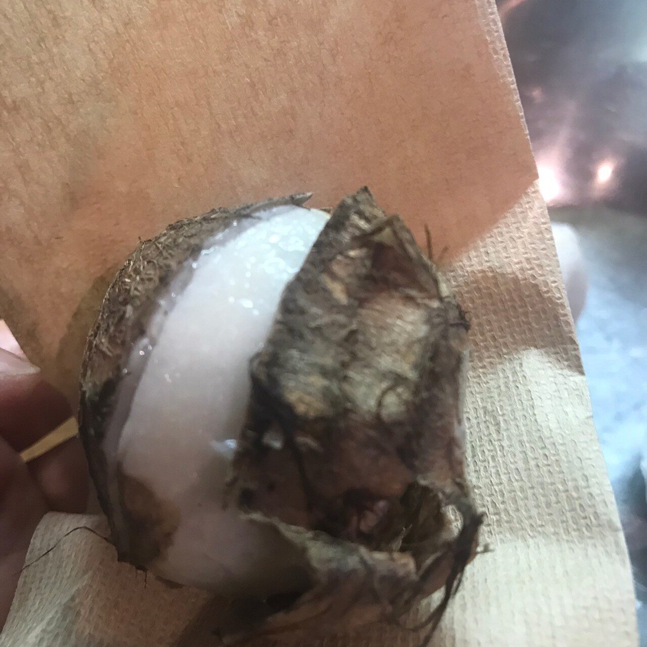 熱いうちに、ふきんなどでくるんで切り目からつるん皮をむく。