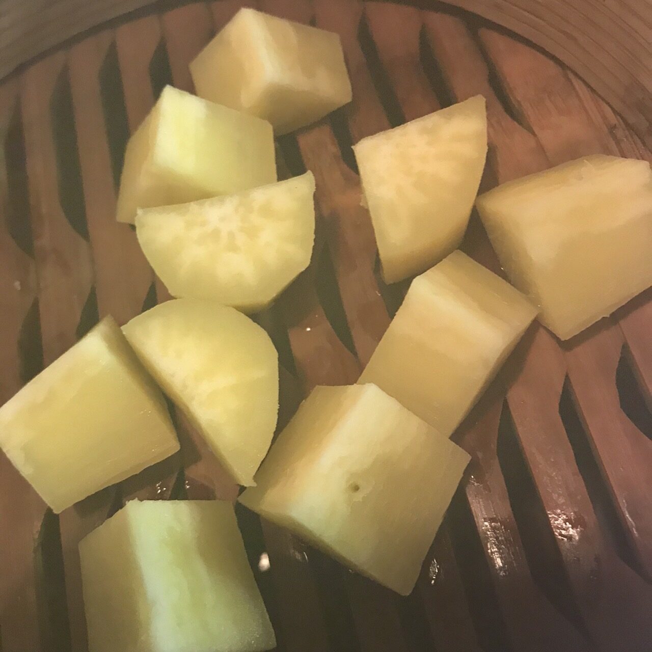 さつまいもは皮をむき2cm角ほどに切り、蒸しておく。