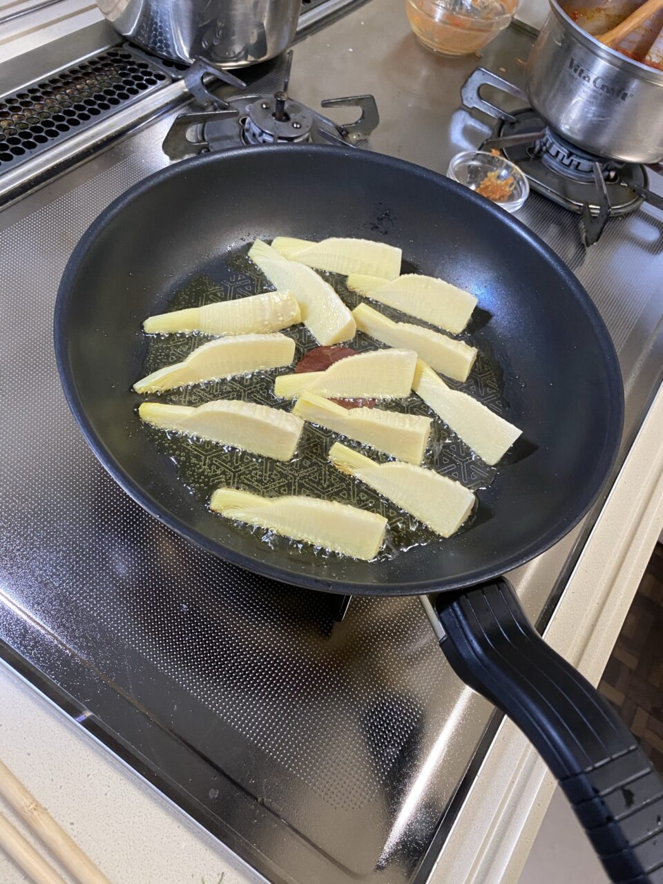 フライパンにオリーブオイルを熱してこんがり焼く。
