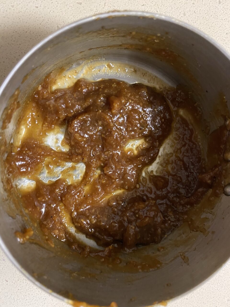 フライパンに残ったオイルで山椒味噌をのばし、添える。